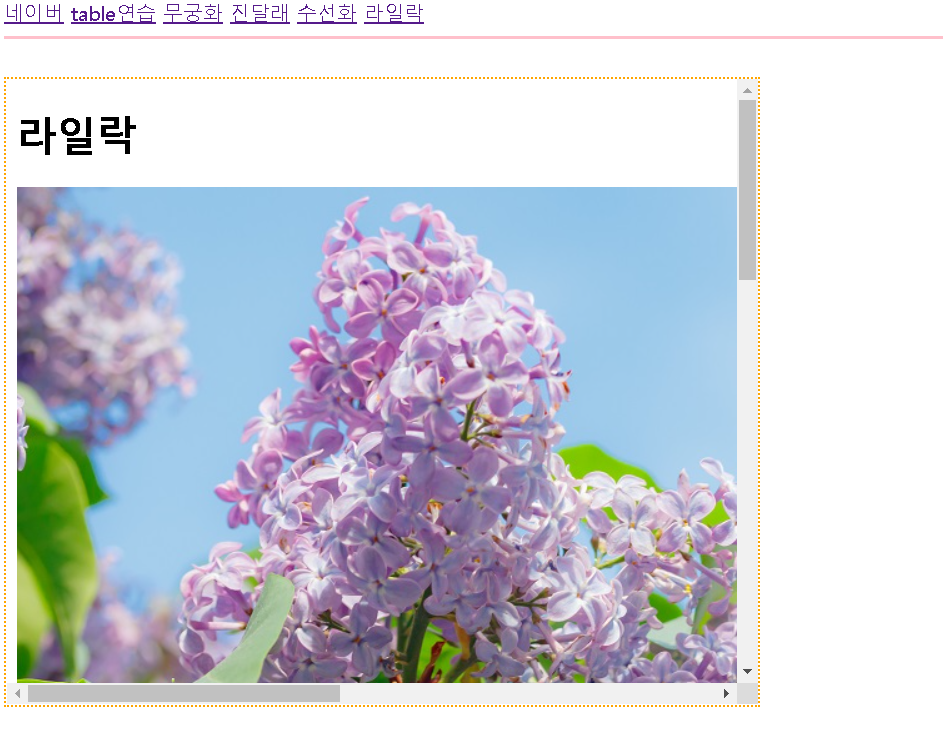 <iframe src="라일락.html" name="flowers" title="flowers"></iframe>